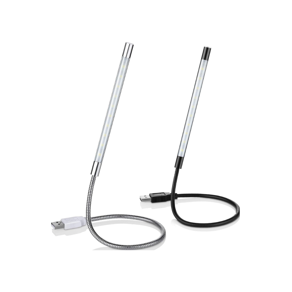 Lot de 2 lampes de lecture LED USB réglables – Noir & Argent